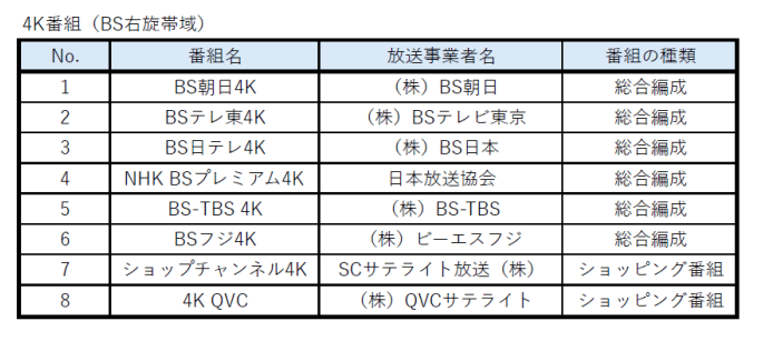 「BS4K」で見られる番組(画像=