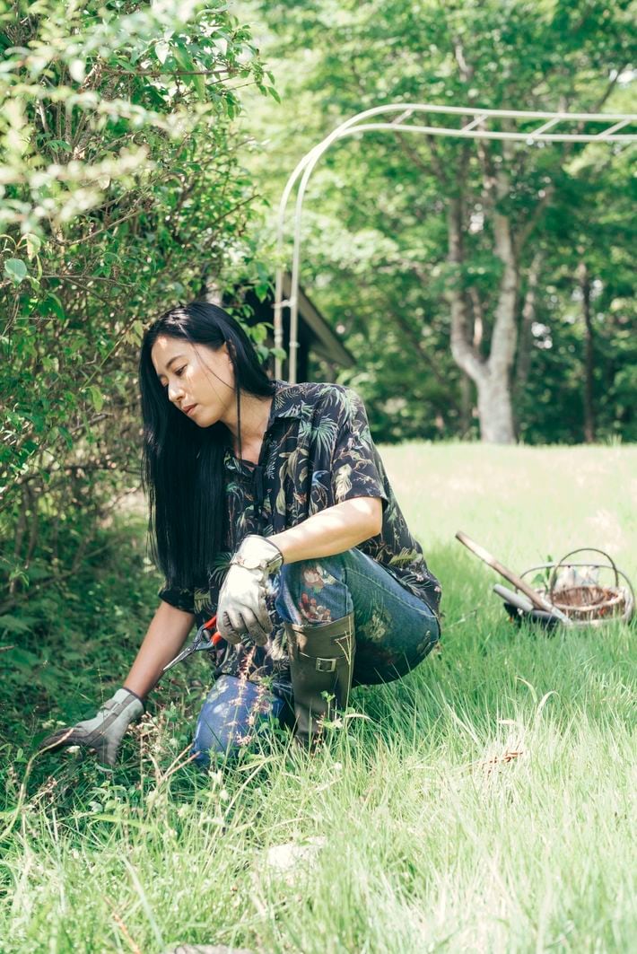 園芸をする三浦瑠麗さん(撮影=上野裕二)