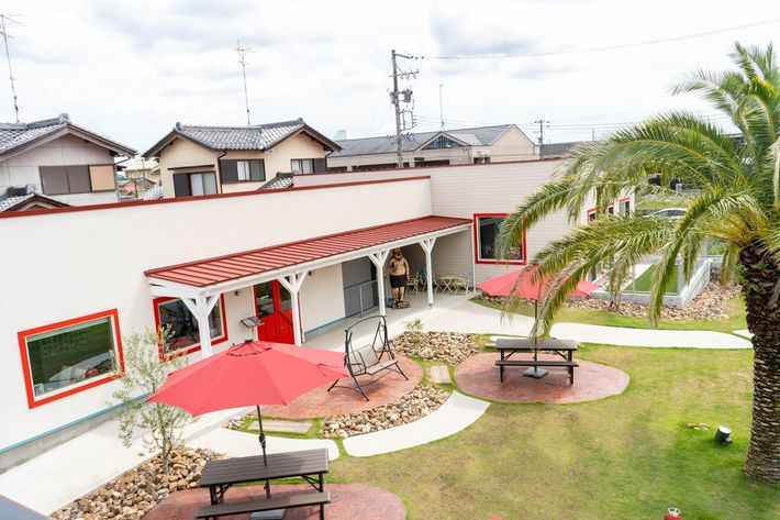 本社の2階に広いスペースがある。昼はスタッフの休憩室になり、就業後は地域の人のために映画やピラティスレッスンの場所として開放している