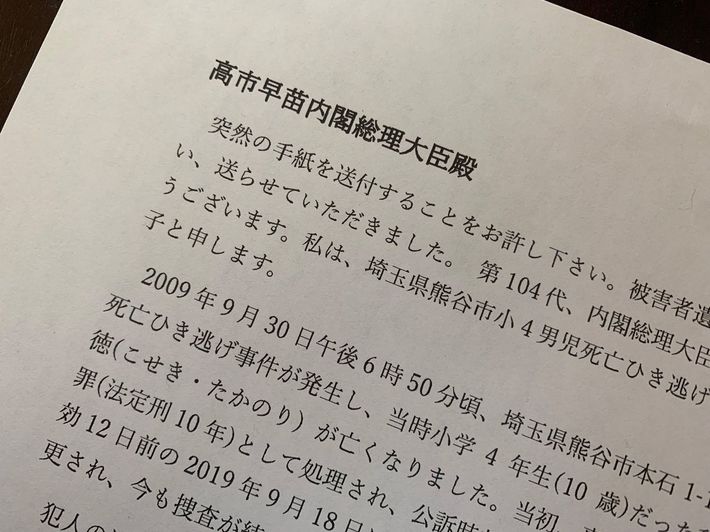 小関代里子さんが高市早苗首相に出した手紙(photo 野村昌二)