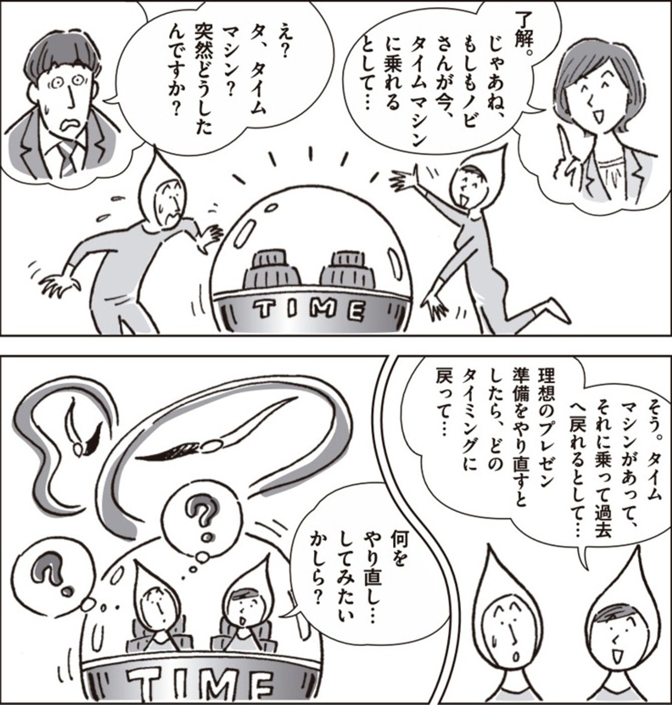 顧客へのプレゼンを失敗した部下に「もし過去に戻れるなら何をどうやり直したいか?」と問う、共創型の上司(『優れたリーダーはアドバイスしない』より。作画:中村知史)