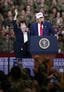 米海軍の原子力空母「ジョージ・ワシントン」で演説するトランプ米大統領(右)と高市早苗首相=2025年10月28日、神奈川県横須賀市