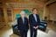 特別対談を行った小長氏(左)、石破氏。対談収録はRSK本社にある能舞台で行われた。能舞台保護のため、予め床板の上に養生を施した状態で収録を行った。(12月29日16時追記)