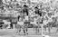 高校1年の全道高校陸上5000mで3位に入賞した筆者(左の紺色のユニフォームの選手)。筆者のほうを見ている決勝審判員の実父(白いキャップに上下白のウィンドブレーカー姿)