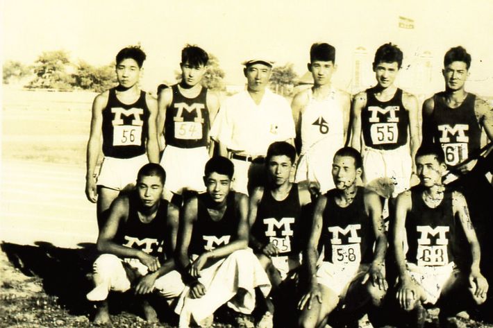 明治大学時代の実父田中久夫(後列左から2人目、ゼッケン54)