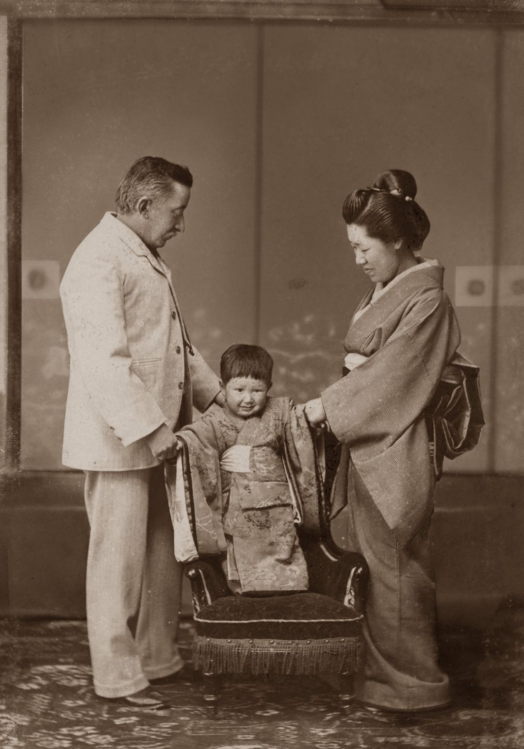 小泉八雲(ラフカディオ・ハーン)と妻のセツ、長男の一雄