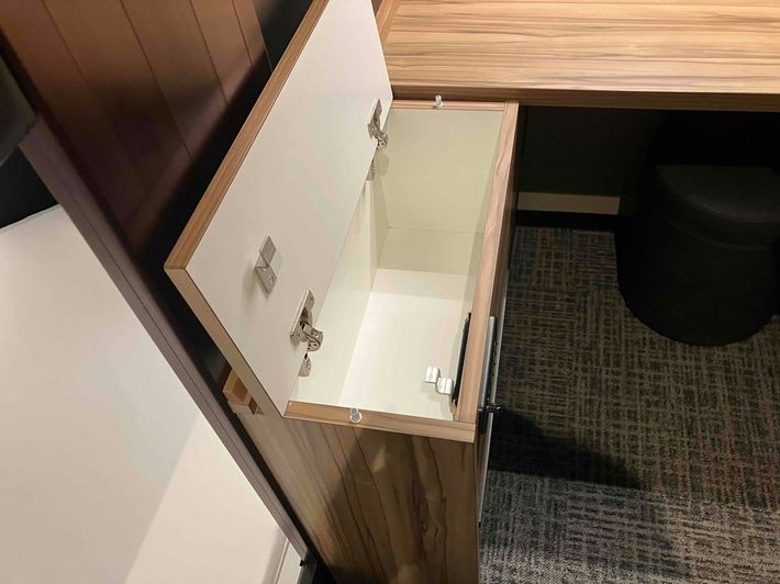 キャビンタイプの男性客室。貴重品はセキュリティボックスで保管できる