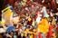 マサラ上映中の様子。紙吹雪が舞いクラッカーと歓声が響く(配給会社の許可を得て撮影)