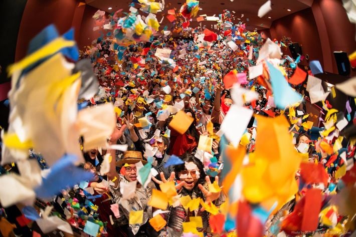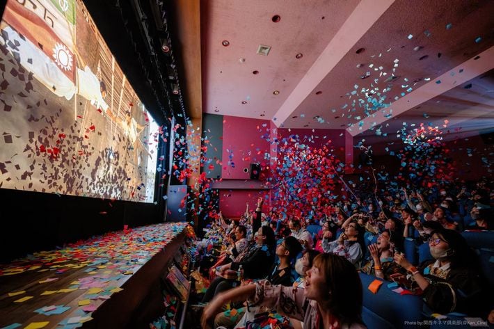 紙吹雪と歓声が交わるマサラ上映の「聖地」となった塚口サンサン劇場(配給会社の許可を得て撮影)