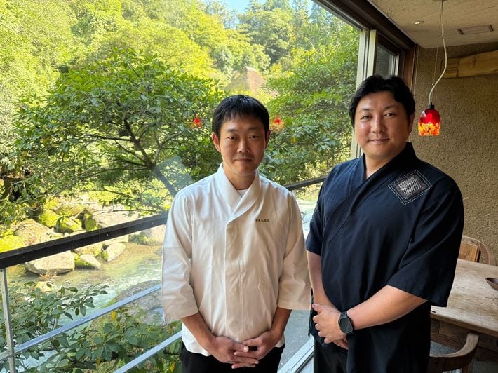 妙見石原荘を率いる石原大佑社長(右)と松本大樹料理長