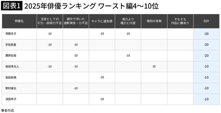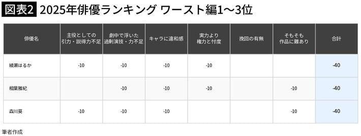 3位は森川葵、2位は相葉雅紀、1位はNHKドラマ主演女優…国内ドラマ「2025年俳優ランキング」男女混合ワースト5