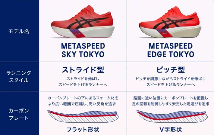 スカイ(左)とエッジ(右)。写真は、最新の「METASPEED TOKYOシリーズ」(2025年発売)のもの。