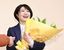 前橋市長選で再選を決め、花束を手にする小川晶氏=2026年1月12日夜、前橋市