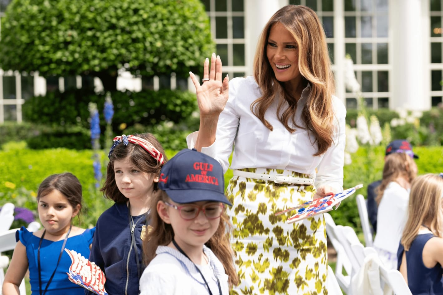 ホワイトハウスで「子供を職場に連れてくる日(Take Your Kids to Work Day)」に出席したメラニア夫人。