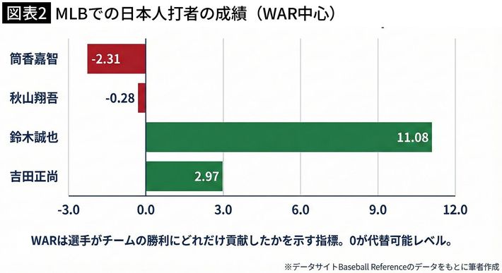 ※WAR(Wins Above Replacement)は、セイバーメトリクスによる打撃、走塁、守備、投球を総合的に評価して、選手の貢献度を表す指標。