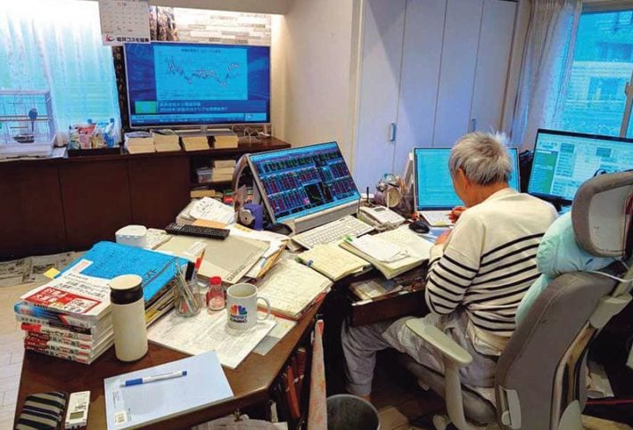 モニター3台を睨みながら慣れた手つきで取引を重ねる藤本さん。