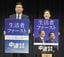 新党「中道改革連合」のポスターを発表する立憲民主党の渡辺創広報委員長(左)と公明党の大森江里子広報委員=2026年1月20日午後、国会内