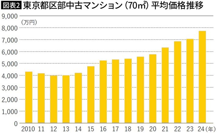 【図表2】東京都区部中古マンション(70平方メートル)平均価格推移(図表=『