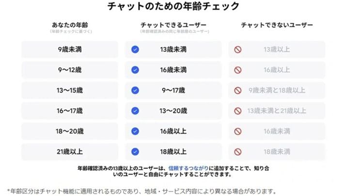 Robloxが設定したチャットの年齢制限(画像=