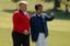 ゴルフ場のドナルド・トランプ大統領と安倍晋三首相、2019年5月26日(写真=