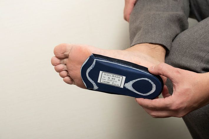 義肢装具士の向氏が紹介するインソール。特に革靴にインソールを入れる場合は、ショートサイズ(半分)のものだと窮屈にならずに安定感を増すことができるという