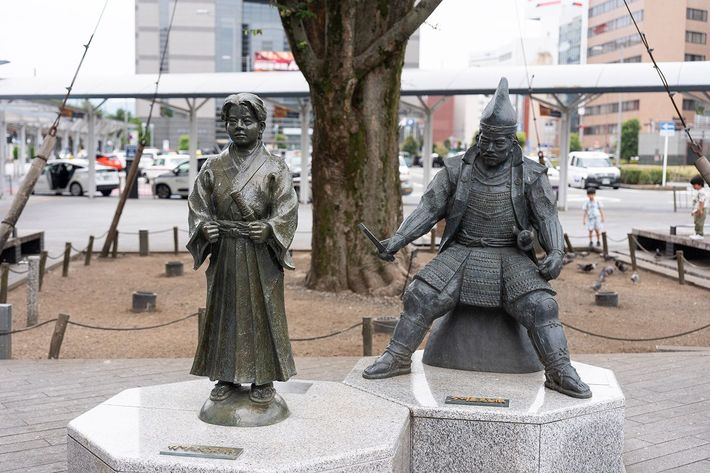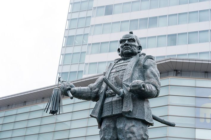 静岡駅の竹千代(徳川家康)像と今川義元像、2025年8月