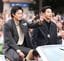 名古屋まつりでのNHK大河ドラマ「豊臣兄弟!」織田信長役・小栗旬(左)と豊臣秀長役・仲野太賀。2025年10月19日、名古屋市