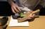 ランチの立ち食い鮨。山葵をすりおろす職人さん