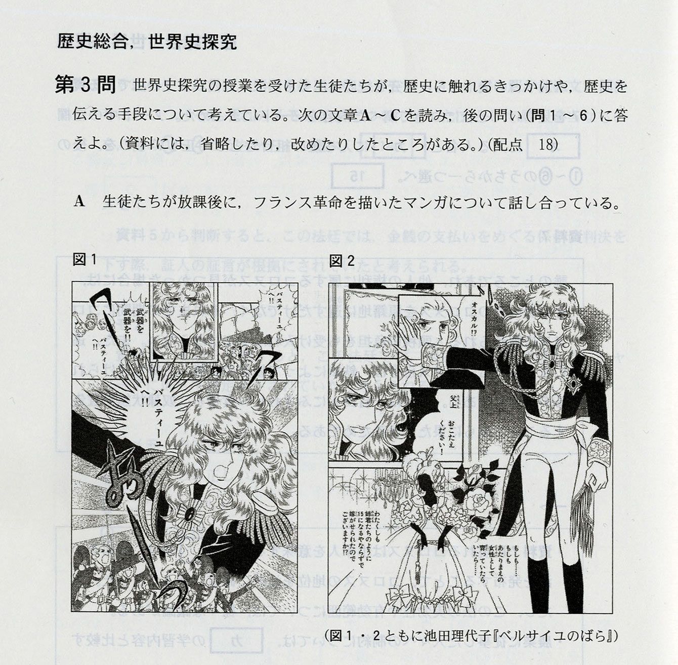 漫画『ベルサイユのばら』が題材として登場した大学入学共通テスト「歴史総合,世界史探究」、2026年1月17日