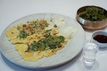 【韓国在住料理研究家が教える】純米酒に合う「白菜とせりのチヂミ(ペチュミナリジョン)」は、ほぼ野菜! 極薄生地が軽やかな旨さ