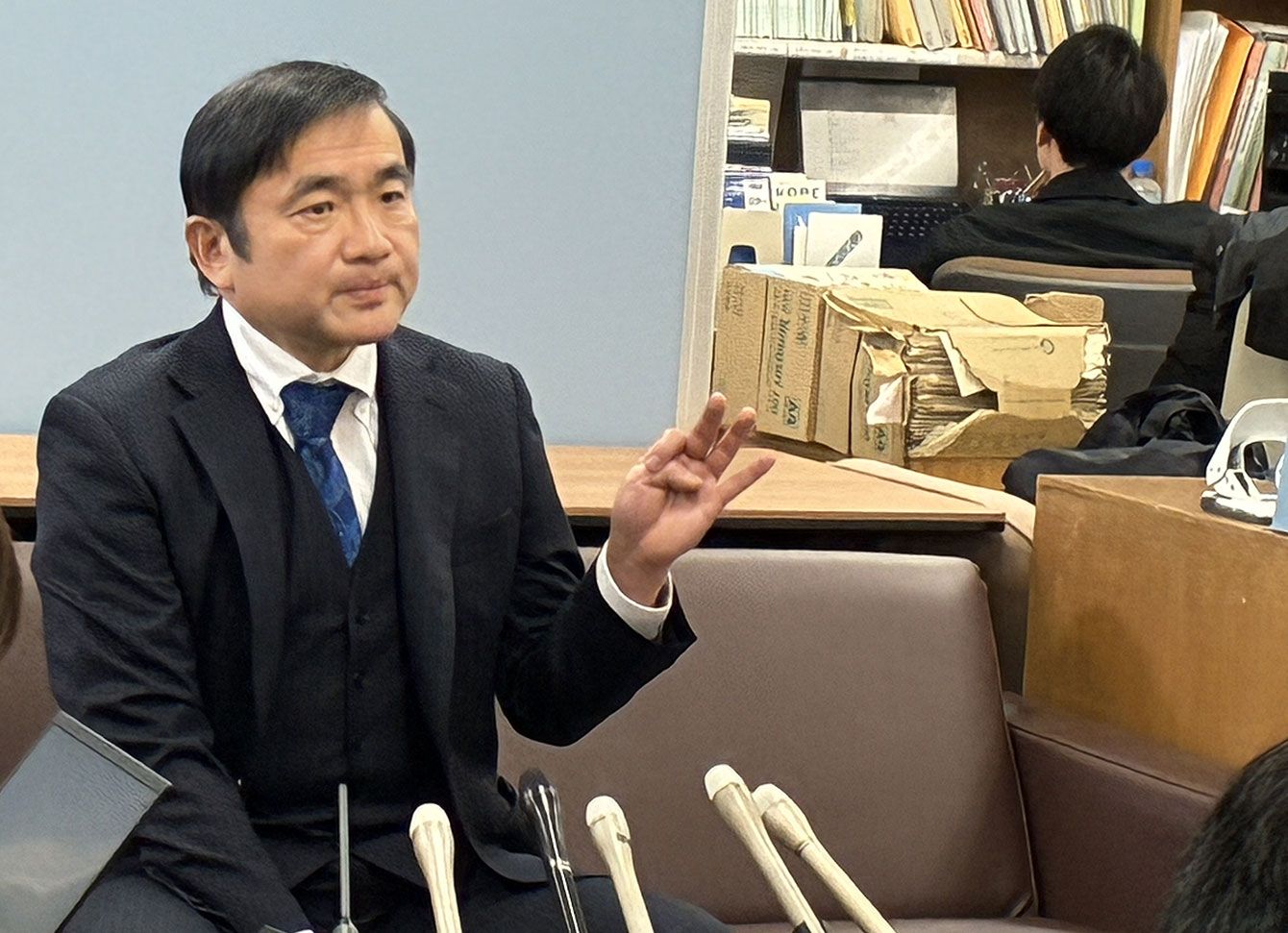 兵庫県警クラブで会見する蓮田健氏