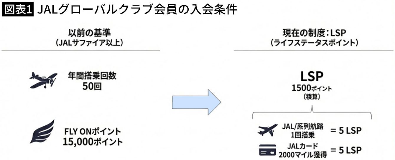 制度変更により、入会の難易度が上がった(JALホームページを参考に、プレジデントオンライン編集部がGeminiで作成)