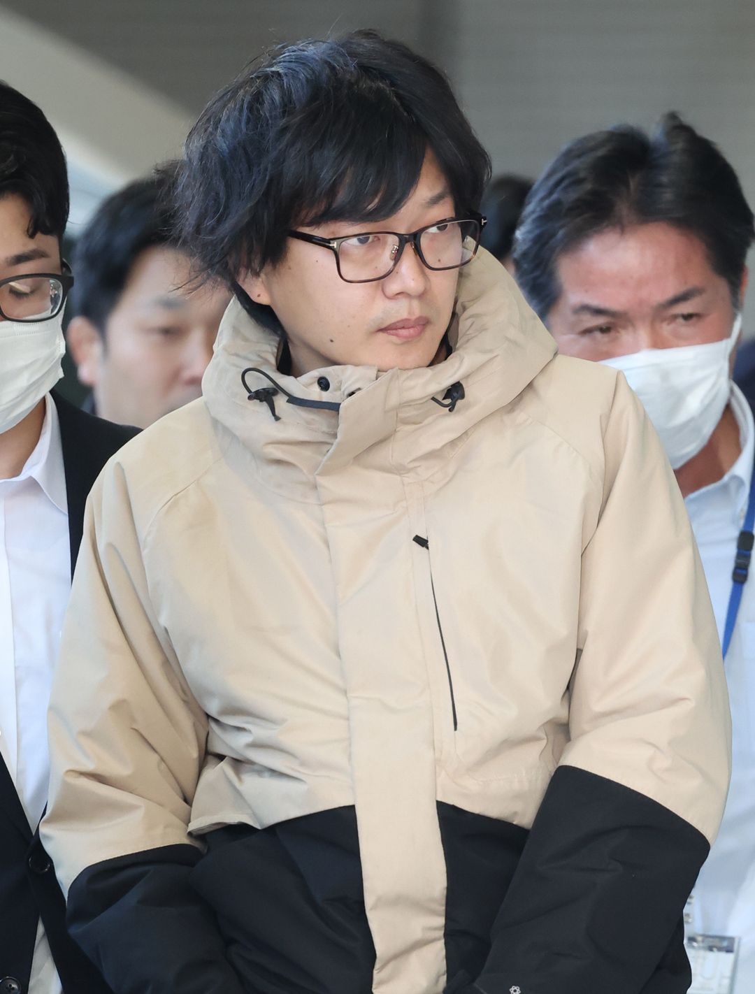 警視庁原宿署に移送される「退職代行モームリ」運営会社「アルバトロス」社長、谷本慎二容疑者=2026年2月3日午前、東京都渋谷区