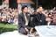 名古屋まつりでのNHK大河ドラマ「豊臣兄弟!」織田信長役・小栗旬(左)と豊臣秀長役・仲野太賀。2025年10月19日、名古屋市