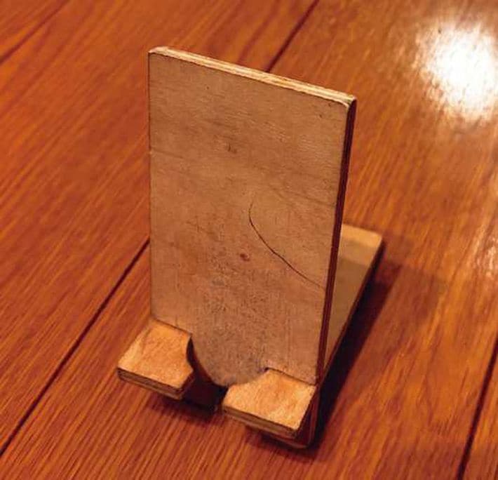 市の講座で制作したスマホスタンド。材料費のみの負担で多様な体験ができるため週に2回通うことも。