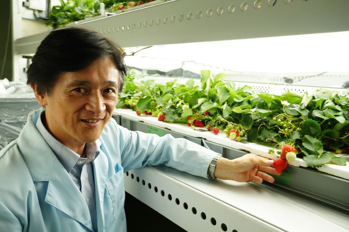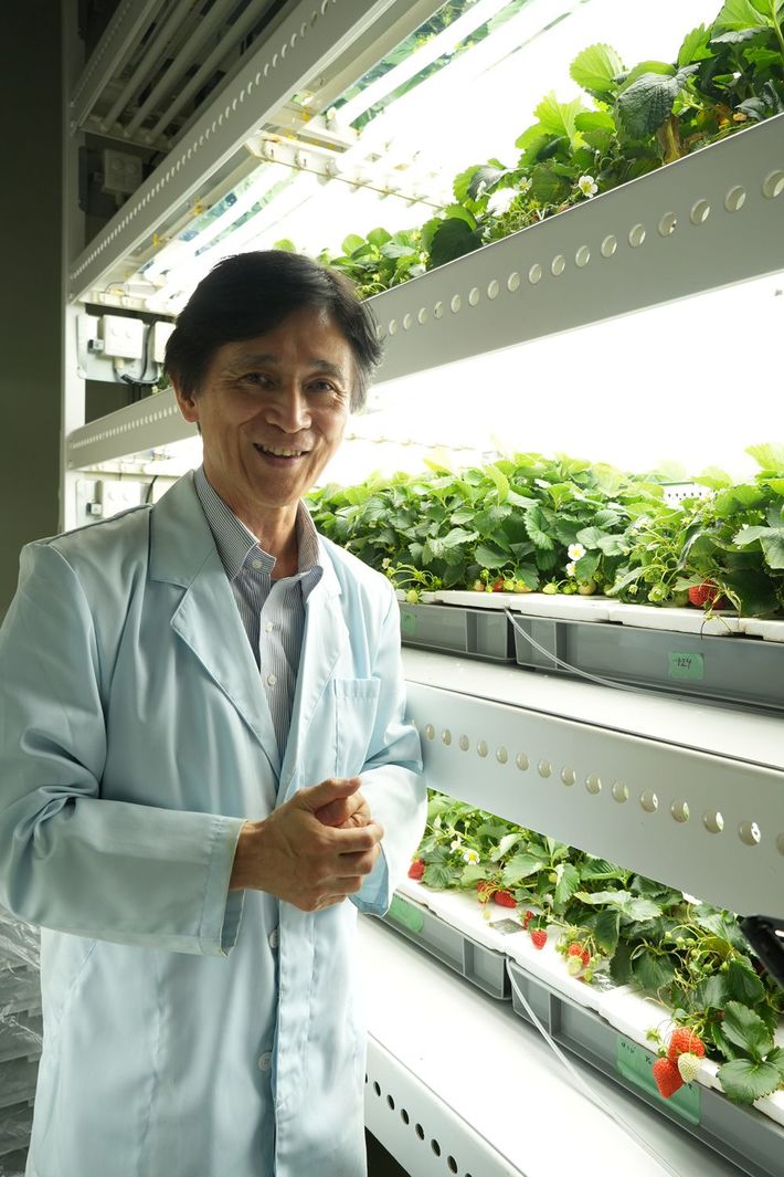 種から育てられた月面イチゴと後藤英司教授(出典=林公代『