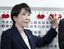 当確者の名前にバラを付ける自民党総裁の高市早苗首相=2026年2月8日、東京・永田町の党本部