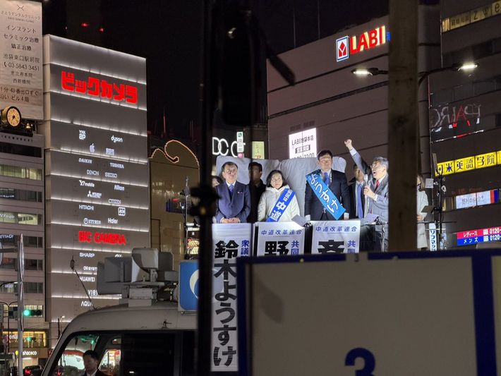 2月7日。池袋駅東口で行われた中道改革連合の街頭演説。中道の支援者と見られる人は大勢いたが、通りがかりの人が足を止めていた様子はなかったという