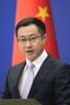 記者会見する中国外務省の林剣副報道局長=2026年2月10日、北京