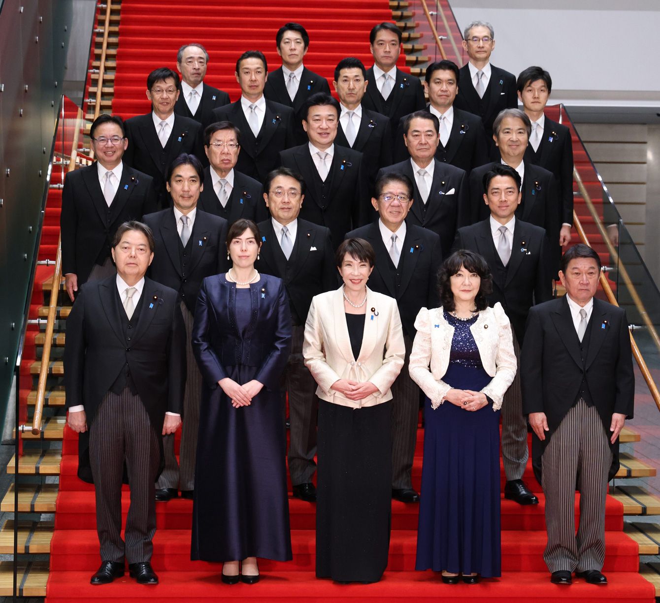 第2次高市内閣がスタートし、記念撮影に臨む高市早苗首相ら(=2026年2月18日、首相官邸)