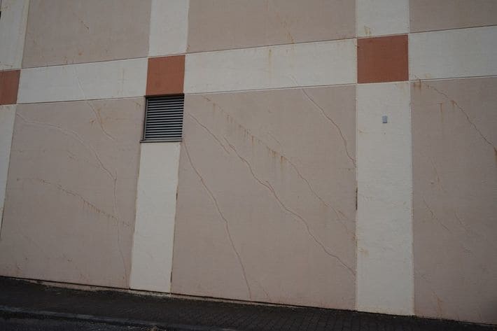 さん・あぴおの外壁。いくつもひび割れが入っているが、そのまま放置されている