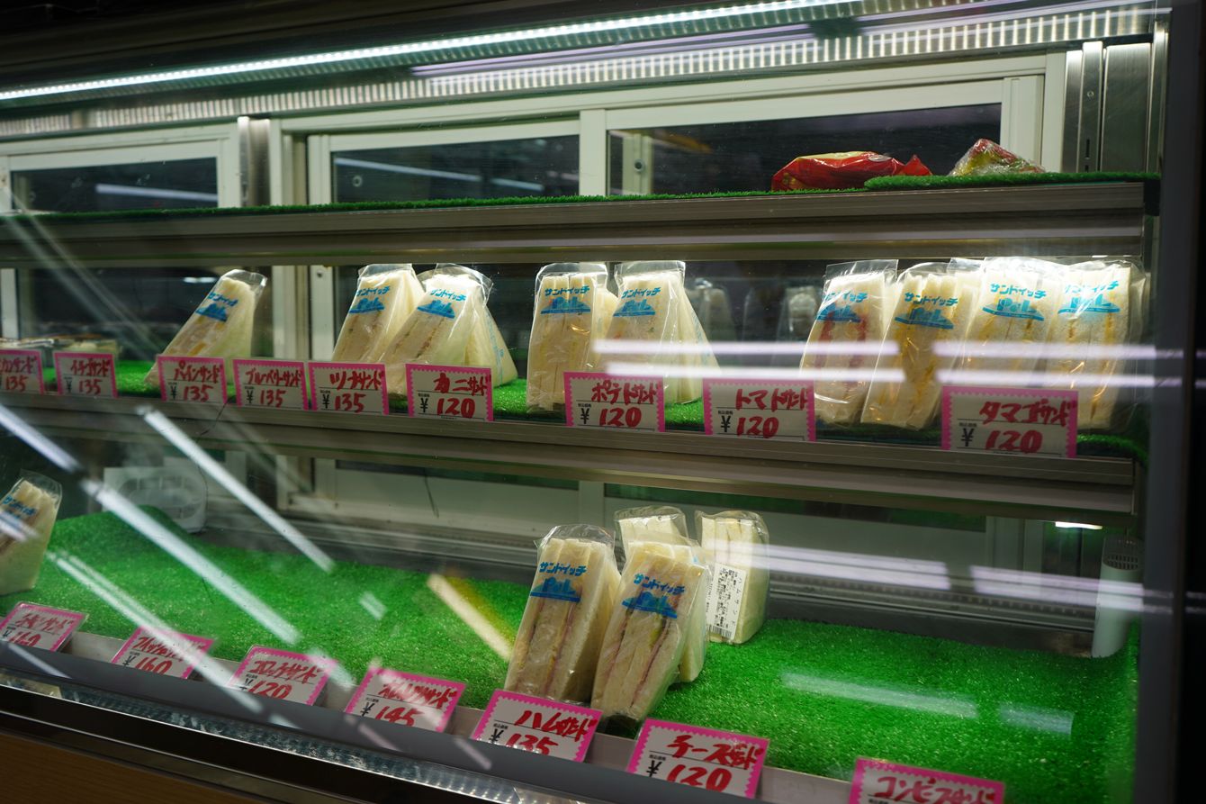 PALのサンドイッチコーナー。120円から135円の商品が多く、主食用のパンもあればフルーツサンドなども充実している