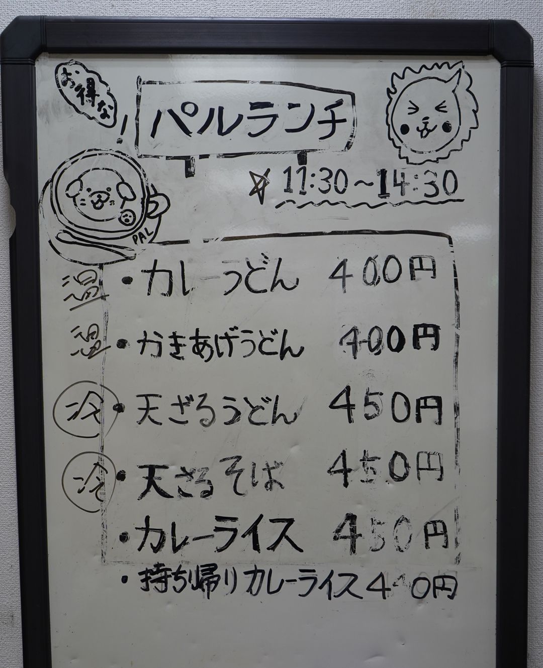 パルのランチメニュー。すべてのメニューが500円を切っている