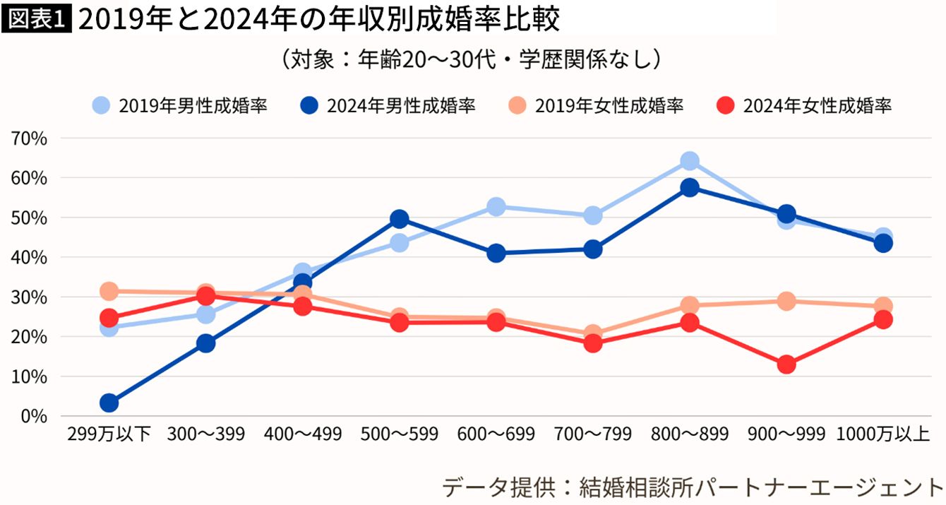 ※年収900万円台女性も大幅に成婚率が落ちていますが、ユーザー数が少ないため個々のデータが大きく反映されやすいです。