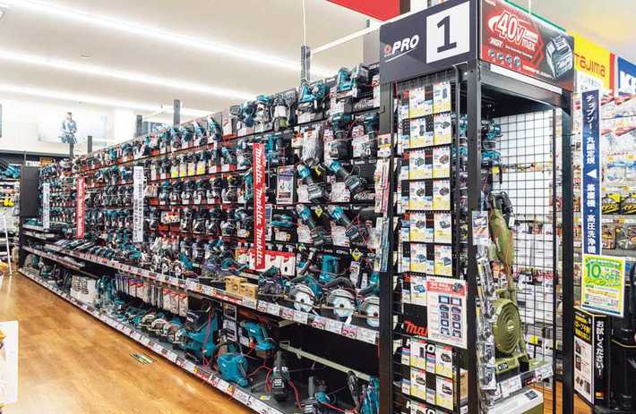 コーナンPRO八尾沼店の売り場。建築職人の要望に丁寧に応え、品揃えを充実させている。チップソーだけでも約230種類も取り揃える。