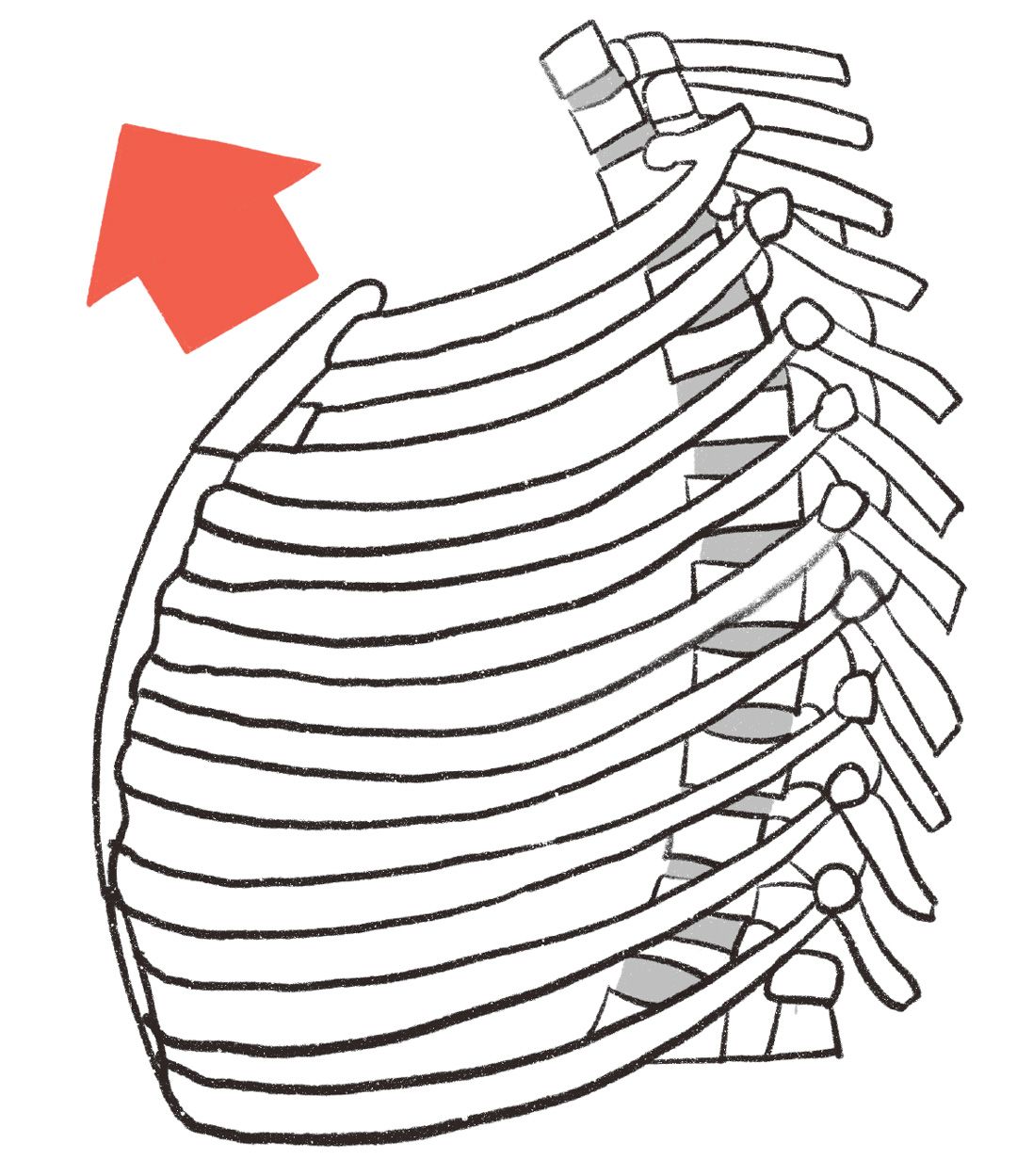ふたつ目の「胸骨体操」のイラスト。体を外側に向かって開き、一気に脱力するのがポイント (出所=『