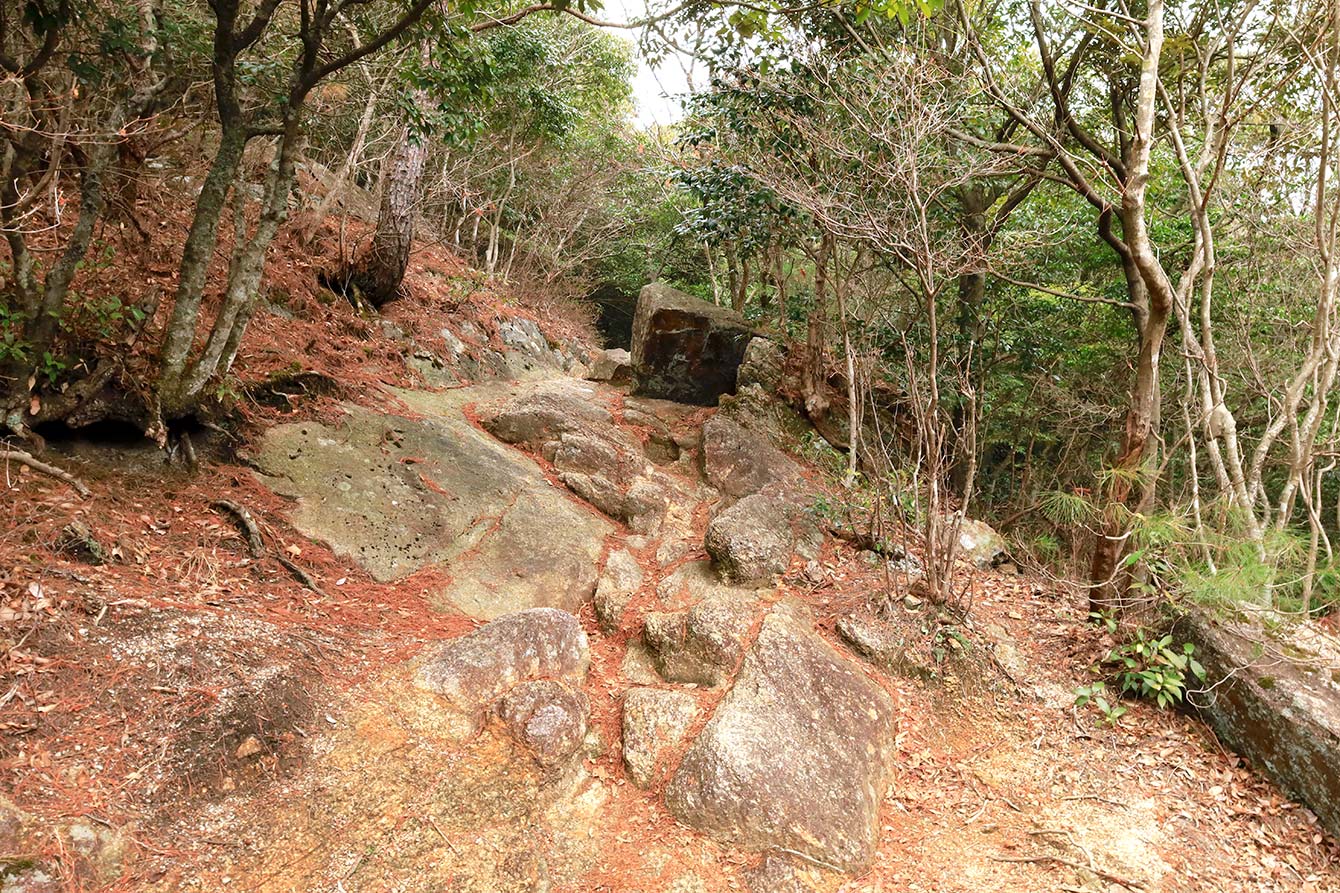 その名の通り岩山の岩石城。巨石が行く手を阻む
