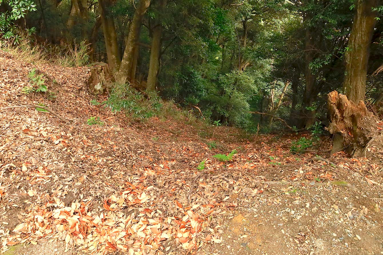 駐車場すぐ北斜面の畝城竪堀。とにかく規模が大きい