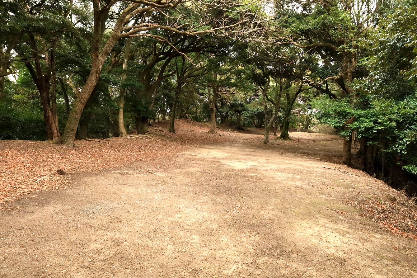 横堀。写真奥の稜線が二の丸