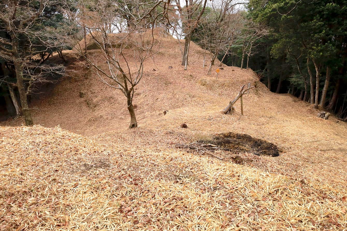 横堀。写真奥の稜線が二の丸